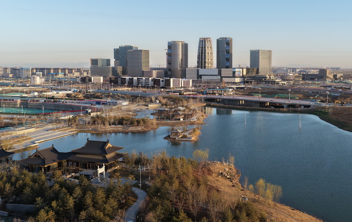 中国中化总部迁驻启动区总部商务区以来,和国贸核心景色(无人机照片)。让前沿手艺间接赋能城市成长。<img)
